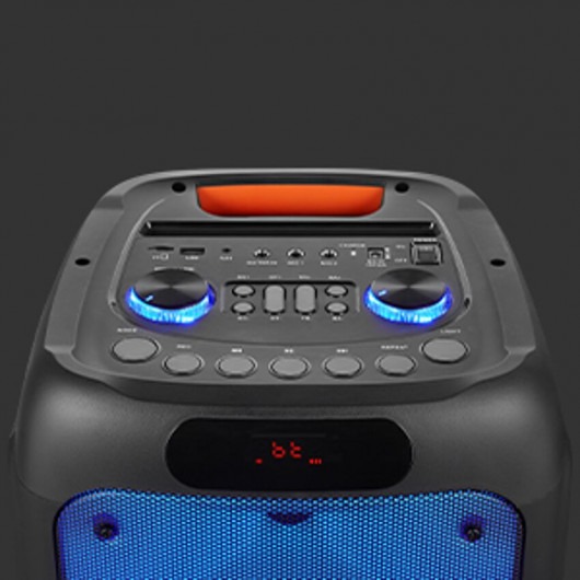 Get every party started with the Helios series! With dual 8-inch drivers, incredible sound quality, 2x microphone inputs, a guitar input jack and light effects – the Helios leaves nothing to the imagination. All extra features have been carefully thought out and put together to ensure the success of every event you have planned – be it a casual Sunday braai, a family karaoke night or a birthday ragger. The speaker has wheels and a handle which allow for easy relocation and transporting of the speaker. It also comes with multiple other input features – like a built in FM radio function, SD card input, aux audio jack as well as USB ports.